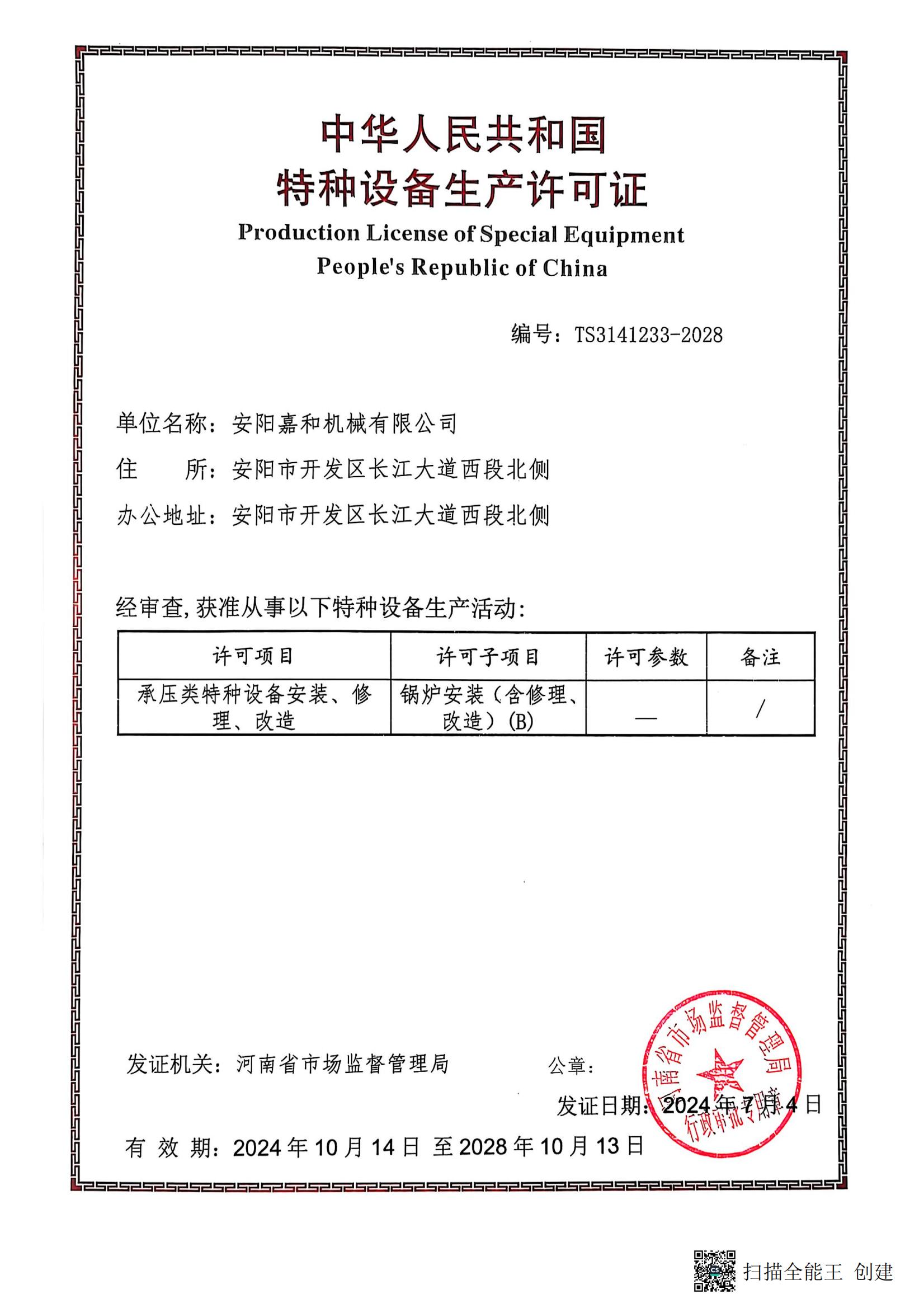 鍋爐安裝—生產(chǎn)許可證