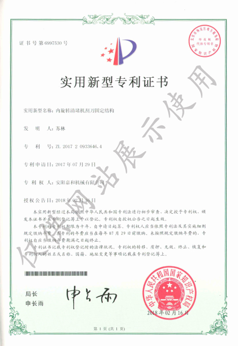 內(nèi)旋轉(zhuǎn)清堵機(jī)刮刀固定結(jié)構(gòu)